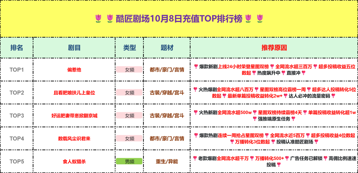 🔥近期新剧,单稿充值5.7k+,📈近期持续高流量,收益稳定!