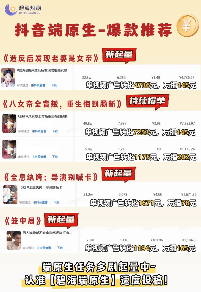 🔥近期新剧,单稿流水1w+,💎一条投稿秒变土豪!
