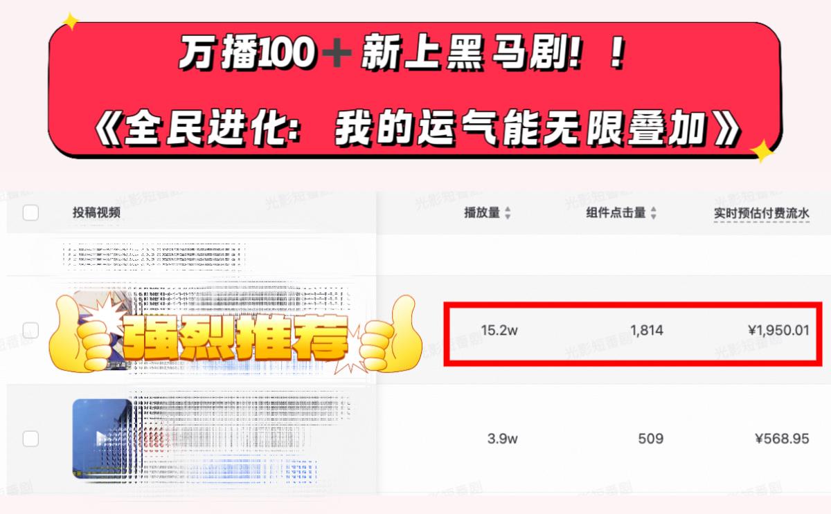 万播110+ 新上线黑马剧 《全民进化:我的运气能无限叠加》